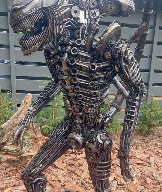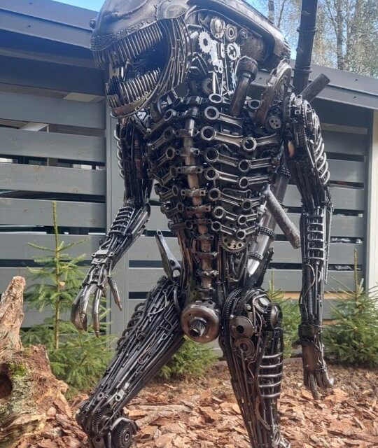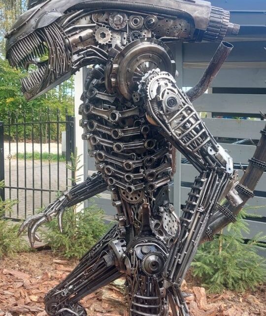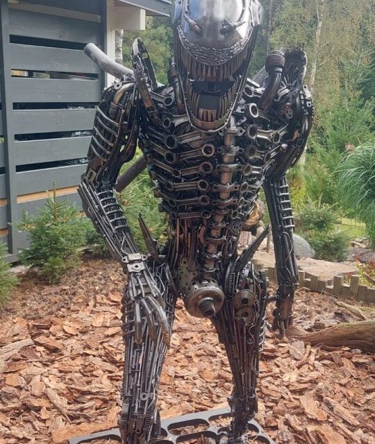 Rzeźba obcy alien kosmita potwór z metalu metaloplastyka loft art